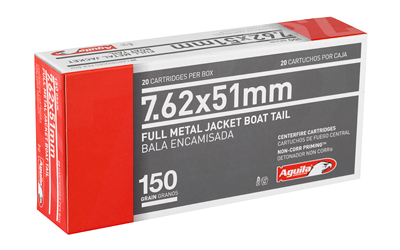 Aguila Ammunition Rifle, 762X51, 150 Grain, Full Metal Jacket Boat Tail, 20 Round Box 1E762110