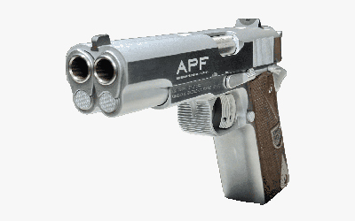 American Precision Firearms Second Century, 1911, Semi-automatic, Single Action, Double Barrel, Steel Framed Pistol, 45ACP, 5″ Barrels, Brushed Stainless Steel, Silver, Wood Grips, 7+7 Rounds, 2 Magazines AFA1-45-SS-14