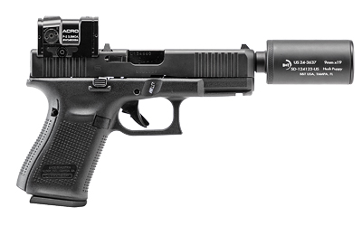 B&T USA Hush Puppy Kit With G19 Pistol, Striker Fired, Semi-automatic, Polymer Frame Pistol, Compact, 9MM, 4″ Barrel, Threaded 13.5X1 LH, Matte Finish, Black, Adjustable Sights, Aimpoint Acro P-2 Red Dot, 15 Rounds, 2 Magazines, Includes Hush Puppy Project Model 2 Suppressor BT-HUSH-PUPPY-KIT-CSTM