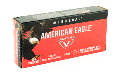 | Sell Description | Train like never before with 224 Valkyrie and American Eagle rifle. The loads feature Federal(R) brass, clean-burning powder, consistent primers and accurate 75-grain TMJ bullets. They're the ultimate |