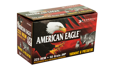 Federal American Eagle Varmint & Predator, 223 Remington, 50 Grain, Jacketed Hollow Point, 50 Round Box AE22350VP