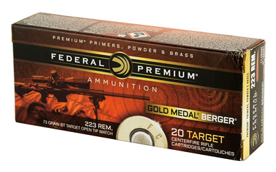 Federal Gold Medal, 223 Remington, 73 Grain, Berger Boat Tail Target, 20 Round Box GM223BH73