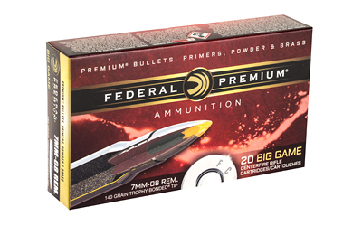 | Specifications | ["7mm-08 Remington","2,800 Feet per second","140 Grain Trophy Bonded Tip","20 Rounds per box"] |
