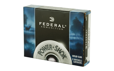 Federal PowerShok Ammunition, 10Ga 3.5″, 1.75oz, Rifled Slug Hollow Point, 5 Round Box F103FRS