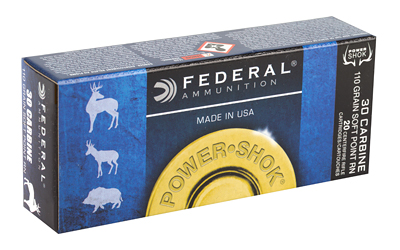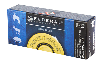 Federal PowerShok, 30 Carbine, 110 Grain, Jacketed Soft Point, Round Nose, 20 Round Box 30CA
