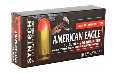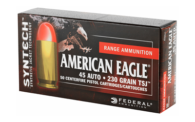 Federal American Eagle, Syntech Training Match, 45ACP, 230 Grain, Total Synthetic Jacket, 50 Round Box AE45SJ2