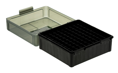 | Specifications | ["High density polymer construction for maximum durability","Hinge-top design prevents lid from inadvertently closing","Smoke Gray","100 Round capacity"] |
