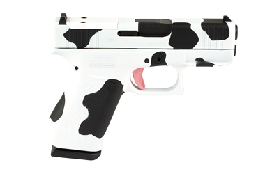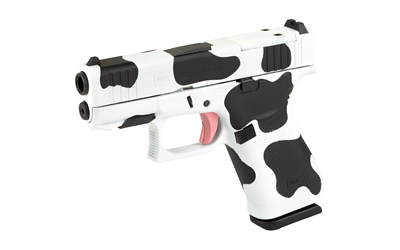 GLOCK 43X M.O.S., Semi-automatic, Striker Fired, Polymer Frame Pistol, Sub-Compact, 9MM, 3.41 Barrel, Custom Cow Print Finish by Skydas, Fixed Sights, 10 Rounds, 2 Magazines PX4350201FRMOSN