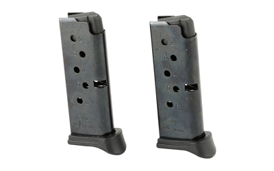 Ruger Magazine, 380ACP, 6 Rounds, Fits Ruger LCP, with Finger Rest, 2 Pack, Steel, Blued Finish 90643