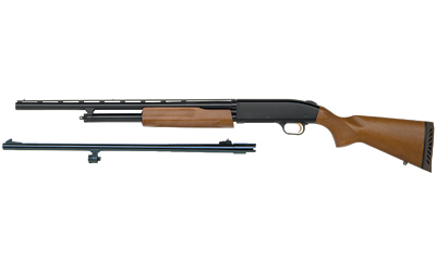 Mossberg 500 Combo, Bantam Compact, Pump Action, 20 Gauge, 3″ Chamber, 22″ Vent Rib Barrel, AccuChoke, Blue Finish, Wood Stock, Bead Sight, 5 Rounds, w/24 Rifled Barrel, Rifled Sights 54188