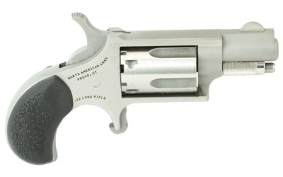 North American Arms Mini Revolver, Single Action Only, Revolver, 22LR, 1.125″ Barrel, Matte Finish, Stainless Steel, Silver, Rubber Grips, Fixed Sights, 5 Rounds NAA-22LR-GRC