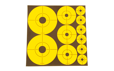 Pro-Shot Products Bullseye Target, Assorted 1″/2″/3″ Bullseyes, 10 Sheets, Orange/Black ASSORTED-DOT
