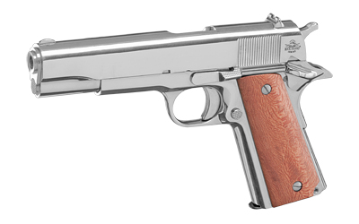 Armscor GI Standard FS, 1911, Semi-automatic, Metal Frame Pistol, Full Size, 38 Super, 5″ Barrel, Steel, Polished Nickel Finish, Wood Grips, Fixed Sights, 9 Rounds, 1 Magazine 51814