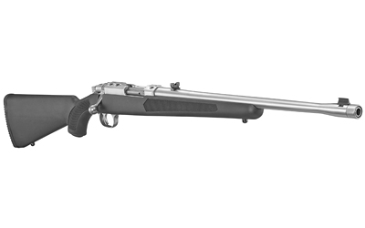 Ruger 77/44, Bolt Action Rifle, 44 Magnum, 18.5″ Threaded Barrel, 11/16X24 Threads, Stainless Finish, Synthetic Stock, Adjustable Rear Sight, Bead Front Sight, 4 Rounds 07417