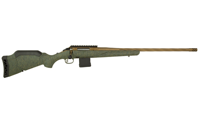 Ruger American Generation II, Predator, Bolt Action Rifle, 223 Remington. 22″ Spiral Fluted Barrel, 1:8 Twist, Threaded 1/2X28, Muzzle Brake, Cerakote Finish, Burnt Bronze, Green Splatter Synthetic Stock, Manual Safety, Picatinny Rail, 10 Rounds, 1 Magazine 46939