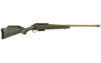 Ruger American Generation II, Predator, Bolt Action Rifle, 450 Bushmaster, 22″ Threaded Barrel, 1:16 Twist, Threaded 11/16X24, Muzzle Brake, Cerakote Finish, Burnt Bronze, Green Splatter Synthetic Stock, Manual Safety, Picatinny Rail, 3 Rounds, 1 Magazine 46935