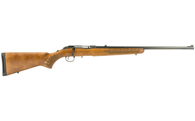 Ruger American Rimfire Wood Stock, Bolt-Action Rifle, 22LR, 22″ Barrel, Satin Blued Finish, Alloy Steel, Wood Stock, Adjustable Rear & Fiber Optic Front Sight, 10 Rounds 08329