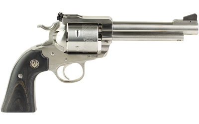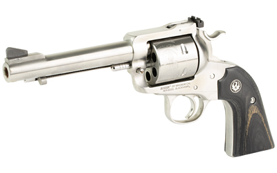 Ruger Blackhawk Bisley, Convertible, Single Action Only Revolver, 357 Magnum/9MM, 5.5″ Barrel, Satin Stainless Steel Finish, Silver, Black Laminate Wood Grips, Ramp Front and Adjustable Rear Sights, 6 Rounds 00358