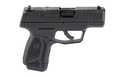 Ruger MAX-9, Striker Fired, Semi-automatic, Polymer Frame Pistol, Sub-Compact, 9MM, 3.2″ Barrel, Nitride Finish, Black, 3 Dot White Sights, Optics Ready, Thumb Safety, 1 Magazine, 12 Rounds 03514