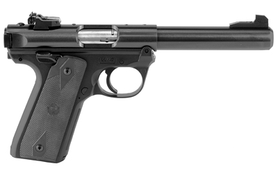 Ruger Mark IV 22/45, Single Action, Semi-automatic, Polymer Frame Pistol, Full Size, 22LR, 5.5″ Barrel, Bull Barrel, Blued Finish, Checkered Synthetic Grips, Adjustable Rear Sight, 10 Rounds, 2 Magazines 40107