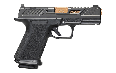 Shadow Systems MR920 Elite, Striker Fired, Semi-automatic, Polymer Frame Pistol, Compact, Massachusetts Compliant, 9MM, 4″ Bronze Spiral and Fluted Barrel, Nitride Finish Elite Slide, Black, Optics Ready, Flat Faced Trigger, Trigger Safety, Tritium Front Night Sight, 10 Rounds, 2 Magazines SS-1085