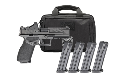 Springfield Echelon, Semi-automatic, Striker Fired, Polymer Framed Pistol, Full Size, 9MM, 4.5″ Barrel, Melonite Finish, Black, Optics Ready Slide, Front White Dot Sight, Tactical Rack U-Dot Rear, Viridian Green Dot, 10 Rounds, 4 Magazines, Includes Range Bag EC9459BLC-PAC
