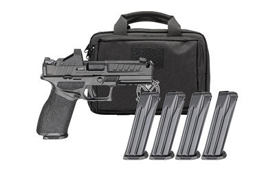 ["Billet Machined, Melonite Finish, Optics Ready, Integral Compensator","Gear Pac Bundle – (4) Magazines, (1) Viridian VFX11 Green Dot & (1) Range Bag"]
