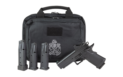 | Specifications | ["Agency Optic System (AOS)","Single Action Trigger","Extended Ambi Thumb Safety","U-Notch Sight Picture","Forward Slide","Gear Pac Bundle – (4) Magazines, (1) Viridian VFX11 Green Dot & (1) Range Bag |