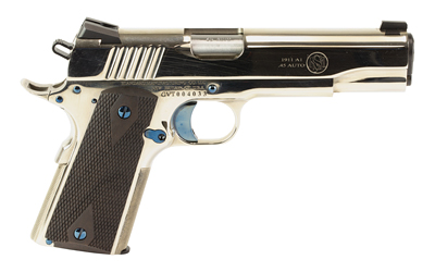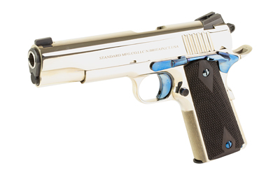 Standard Manufacturing Company 1911, Single Action Only, Semi-automatic, Metal Frame Pistol, Full Size, 45 ACP, 5″ Stainless Steel Match Grade Barrel, 4140 Carbon Steel Frame, Nickel Finish, High Profile Low-Mount Tactical Sights, Manual Thumb Safety, Medium Solid Match Grade Trigger and Enhanced Machined Hammer with 4.5 Trigger Pull, 7 Rounds, 1 Magazine 1911N