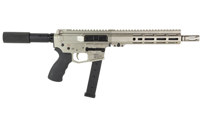 WMD Guns 9MM AR Pistol, Semi-automatic, Pistol, 9MM, 10.5″ Barrel, 1:10 Twist, Blowback Gas System, Compensator, NiB-X Finish, Silver, Free Float Handguard, Black Ergo Pistol Grip, 33 Rounds, 1 Magazine 1-9MMPISTOL-01